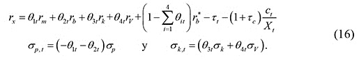 donde rb = i(1 - τy)-π + σρ2. Adicionalmente se supone que i(1 -τy)-π> σρ2, para asegurar que el rendimiento se mantenga positivo.