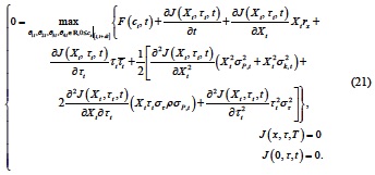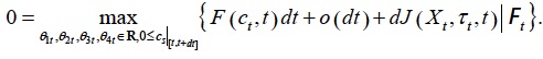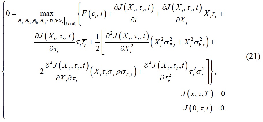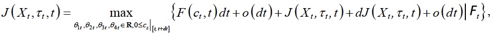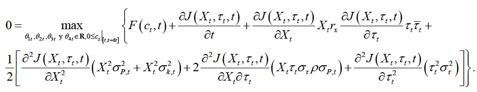 Para dar solución al problema (19) y encontrar las proporciones óptimas en el portafolio de inversión y el consumo del agente maximizador, definimos la función de valor del problema mediante la siguiente expresión:
