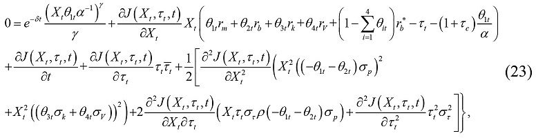 Para hacer uso del teorema de verificación hay que encontrar la función h (τt, t) definida en J (xt, τt, t) que resuelve la ecuación de HJB. Para esto, se observa que la regla óptima de consumo ĉt es lineal en la riqueza y