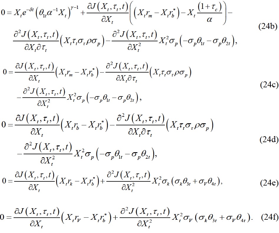 donde τc es una tasa impositiva ad valorem del consumo. Al sustituir las ecuaciones (3) a (10) en el sistema de ecuaciones (13), se tiene que el proceso de la riqueza está dado por el siguiente sistema de ecuaciones diferenciales:
