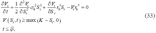 Con el supuesto de que la economía es pequeña, es decir, tomadora de precios, se asume en particular que es tomadora de la tasa de interés. En otras palabras, la economía doméstica toma rb* como la tasa de interés real (libre de riesgo de incumplimiento). En consecuencia, rb* será utilizada para la valuación de la opción americana de venta. Si consideramos que la economía estadounidense representa al resto del mundo, sin duda la probabilidad de incumplimiento de los bonos del Tesoro es menor que la de los Cetes; por lo tanto, la tasa de interés real estadounidense es un mejor candidato como tasa libre de riesgo (de incumplimiento). Es de observar que en la economía doméstica la tasa real rb se calcula en términos del diferencial de la tasa de interés nominal y la tasa de inflación, y que en esta última hay factores de riesgo que la afectan, como el nivel general de precios. Es decir, rb no necesariamente es una tasa de interés libre de todo riesgo.