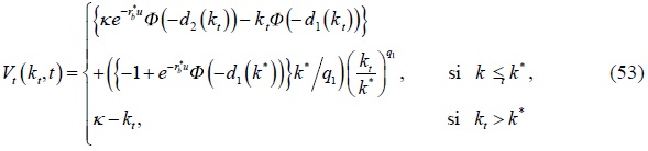 La interpretación correspondiente de esta solución de esquina es que si el agente mantiene la opción americana, entonces cuánto estaría él dispuesto a pagar por dicha opción, al mismo tiempo que maximiza su satisfacción por el consumo. Para tal efecto, se sustituyen en la ecuación (22) los valores obtenidos en las ecuaciones (3) (4) (7a) (16) (26) (27a) (28a) (28b) (28c) y (28d), y las derivadas parciales en μν y σν se evalúan en el dinero, es decir, kt = K, las cuales se denotan mediante