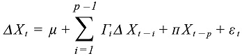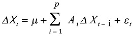 donde ΔXt y ΔXt-1 son vectores de orden (k x 1) y Ai son matrices de orden (k x 1) de parámetros desconocidos.