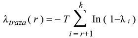 es la i-ésima raíz característica y T es el número de observaciones. Este estadístico evalúa la hipótesis nula de que el número de vectores cointegradores es menor o igual a r contra una hipótesis alternativa general. Los valores críticos son proporcionados por Johansen (1995).