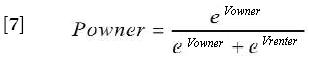 Equation(7) depicts the logit probabilities as a function of both representative utilities introduced in equation(6):
