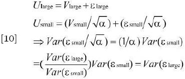 An equivalent model can be generated in which both variances assume the same value. This can be achieved by normalizing the scale of one of the equations and dividing the other by the square root of the ratio of variances α= Var (εsmall)/Var (ε large):