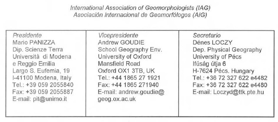 Asociación Internacional de Geomorfólogos Comité Ejecutivo 2001 - 2005