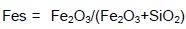 • Relación Fe2O3/(Fe2O3+SiO2). Esta relación depende del contenido de minerales amorfos y marca la diferencia entre los amorfos silicatados y los amorfos de hierro. El valor es pequeño cuando se trata de suelos jóvenes poco desarrollados con grandes cantidades de alofano (cercana a cero), mientras que un valor de 0.4 implica que se tiene un 40% de amorfos de hierro (Yong et al., 1992).
