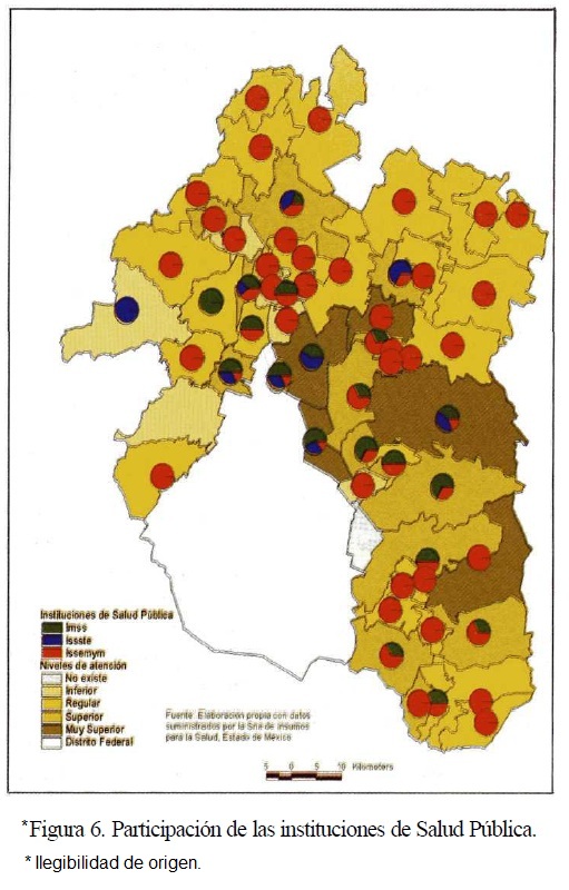 Respecto a la cuestión territorial, una de las deficiencias espaciales de la aplicación de las políticas de salud, está demostrada en la duplicación o triplicación de infraestructura de varias instalaciones en el mismo espacio para la salud. Por un lado, está la dotación de varias instituciones y, por otro, esta última se da en los mismos municipios como en Ecatepec, Nezahualcóyotl; es decir, además de que cada institución cuenta con un establecimiento médico en el mismo municipio, también cuenta con establecimiento médico, por parte de las instituciones consideradas, en una localidad como es el caso repetitivo de Cuautitlán, Chalco o Nezahualcóyotl.