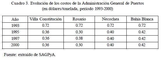 En el período 1993-2000, los costos de la Administración General de Puertos se redujeron en un 50% en todos los puertos seleccionados después del proceso de privatización (Cuadro 3).