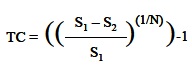 donde TC es la tasa de cambio anual, S1 es la superficie al inicio del período, S2 la superficie al final, y N es el número de años del período.