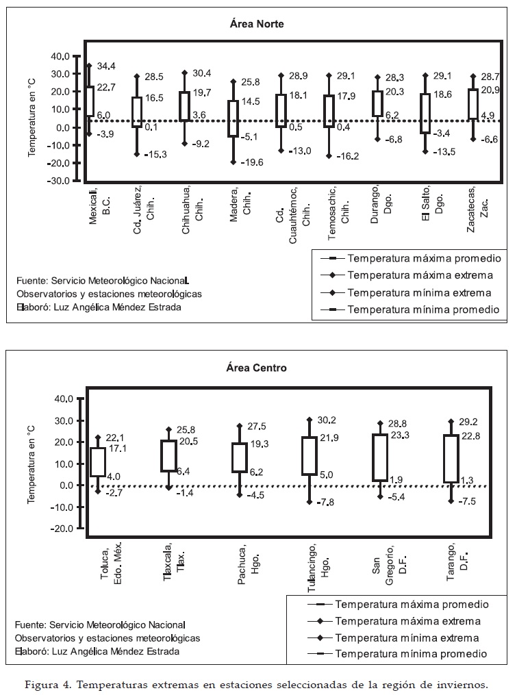 La región con inviernos se presenta en dos áreas muy contrastantes en el país: la norte y la central, las cuales muestran características peculiares tanto desde el punto de vista climático como poblacional (Figura 6).