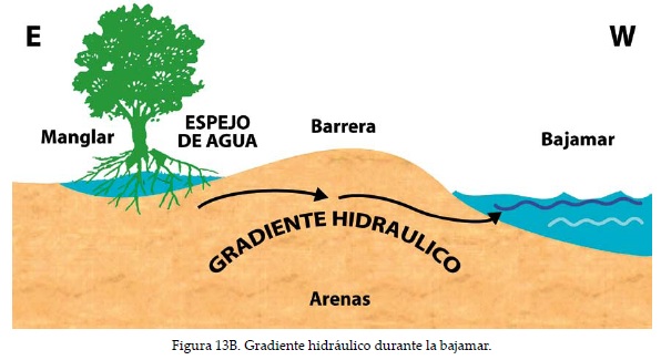 En Venezuela el desarrollo más exuberante de manglares se localiza bajo condiciones de elevadas precitaciones y elevada temperatura (Pannier 1986), mientras que en contextos de extrema aridez como el ejemplo que nos ocupa, las áreas de manglares son reducidas, coexisten con vegetación xerofítica, presentan discontinuidad de cobertura y dependen para su subsistencia del aporte de nutrientes de origen marino, en este caso provistos por la oscilación del gradiente hidráulico, lo cual les confiere la característica de oligotróficos.