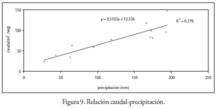 Las oscilaciones manifestadas en el balance hídrico tienen incidencia directa sobre el régimen hidrológico de los escurrimientos superficiales. No obstante, la evidente correspondencia que vincula la precipitación con el caudal, está determinada tanto por las condiciones físicas de la cuenca como por el carácter de las lluvias. En ese sentido, los análisis de correlaciones entre ambas variables resultan muy útiles para establecer el grado y tipo de relación entre ambos parámetros.
