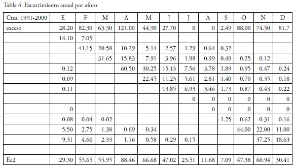 El problema que surge en los trabajos hidrológicos es la obtención de datos y en particular en lo que respecta a la continuidad de los mismos. Sin embargo, existen metodologías más simples desde el punto de vista de la obtención de datos. Una de ellas es la utilizada por Thornthwaite y Mather (1957), en su cálculo del balance hídrico. Esta metodología facilitó la estimación de resultados muy semejantes a los aforados.