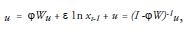 Como indica Anselin (2002), un concepto relacionado a la noción de potencia del modelo gravitacional, es el de una variable explicativa espacialmente rezagada: Wx, donde W es una matriz de pesos espaciales (NxN) y x es un vector (Nx1). Cada elemento de esta variable espacialmente rezagada consiste en una suma ponderada de los valores de la variable en el subgrupo de observaciones vecinas, o formalmente, para cada observación i,