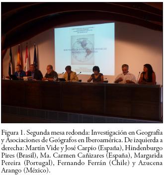 En la segunda mesa redonda sobre "Investigación en Geografía y Asociaciones de Geógrafos en Iberoamérica" además de la información de cada asociación, surgieron temas de interés común (Figura 1). Hoy más que nunca es posible mantener proyectos científicos a distancia, lo que ha permitido fortalecer las relaciones en todo el ámbito iberoamericano; para la divulgación de dicho conocimiento, las revistas juegan un papel protagónico. Si bien el número y calidad de revistas impresas y publicadas en español y portugués es amplio, pocas de ellas están indexadas, es decir, reconocidas de acuerdo con los criterios de alguna institución que determinan los parámetros de calidad de las publicaciones científicas, tanto a nivel regional como mundial.5 Los requerimientos actuales en muchas universidades y centros de investigación sólo toman en cuenta este tipo de publicaciones, que, por lo general, están volcadas a la lengua inglesa. Este fue uno de los principales temas debatidos. Es necesario que un mayor número de las revistas se actualicen, que sean reconocidas por su calidad y fomenten una mayor cooperación entre los países de Iberoamérica. Sólo algunas revistas cumplen con esta función, en el ISI, la Revista de Geografía Norte Grande de la Pontificia Universidad Católica de Chile y en otras plataformas como Scopus, SciELO y Latindex, el Boletín de la Asociación de Geógrafos Españoles, Scripta Nova de la Universidad de Barcelona, a cargo de Horacio Capel e Investigaciones Geográficas del Instituto de Geografía de la Universidad Nacional Autónoma de México.