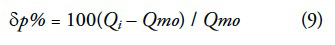 Em que, δp% é o desvio percentual mensal doescoamento superficial, Qt é o escoamento superficialmensal simulado e Qmo é a média históricado escoamento superficial observado.