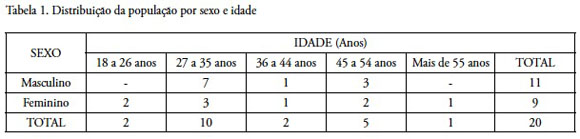 O grupo alvo da pesquisa foi composto de vinte pessoas, residentes do Complexo Passo da Pátria. Foram entrevistadas onze pessoas do sexo masculino e nove pessoas do sexo feminino. A média de idade dos entrevistados é de 37 anos. A faixa etária com maior número de pessoas é a faixa dos 27 a 35 anos de idade com o correspondente a metade dos entrevistados. A Tabela 1 abaixo mostra a distribuição dos sujeitos por sexo e por idade: