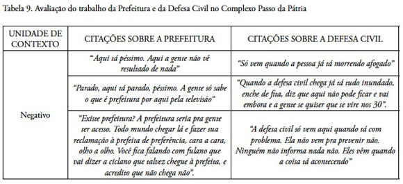 Os entrevistados foram perguntados sobre a avaliação que fazem do trabalho da Prefeitura e da Defesa Civil no Complexo Passo da Pátria, como demonstrado na Tabela 9.