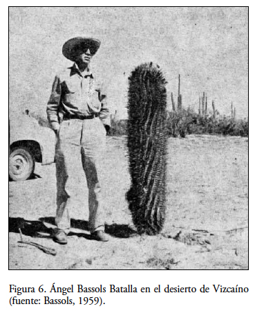 En cambio, la visión sobre la Baja California de Bassols Batalla se posicionaba en un contexto académico, de alta especialización y una racionalidad para la organización de las expediciones por la península.9 Para eso, procedió como explorador (Figura 6), junto con sus colegas biólogos, la primera vez con Gastón Guzmán Huerta y, la segunda, con Julio Villa.
