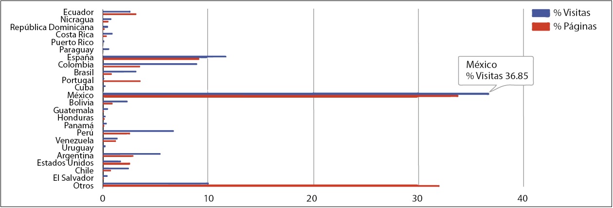 En 2015, el reporte de esta plataforma indica que especialistas de 74 países en los cinco continentes consultaron nuestra revista en 26 640 ocasiones y destaca que el 59% de las consultas corresponden a Estados Unidos (un total de 14 541), seguido de Colombia (12.1%), México (8.8%), Italia (3.7%), China (3.5) y Perú (3.1%). Siguen en la lista de consultas España, Chile, Brasil y Reino Unido, con más de 230 consultas cada uno. El número total de artículos publicados en la revista durante ese año fue de 30 (10 en cada número, de periodicidad cuatrimestral) cuyo autores provienen de siete países (México, Argentina, España, Brasil, Estados Unidos, Nicaragua y Ecuador).