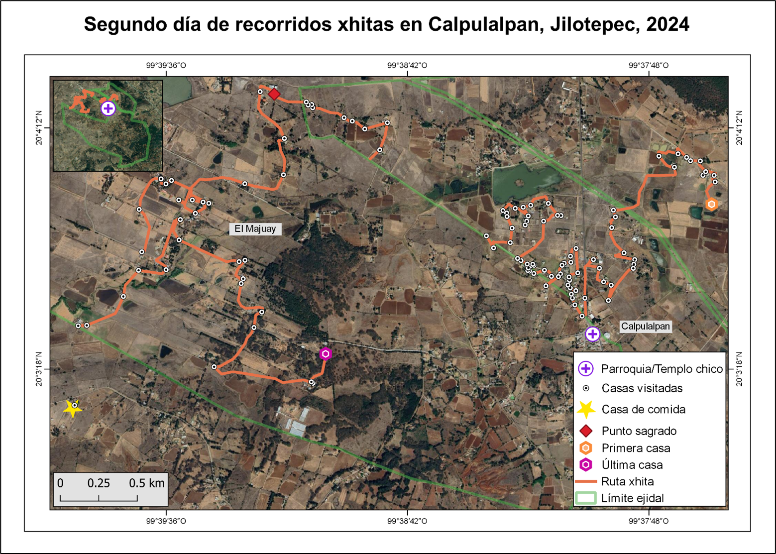 Figura 5 Ruta de los recorridos xhitas durante la segunda jornada de la festividad en 2024.