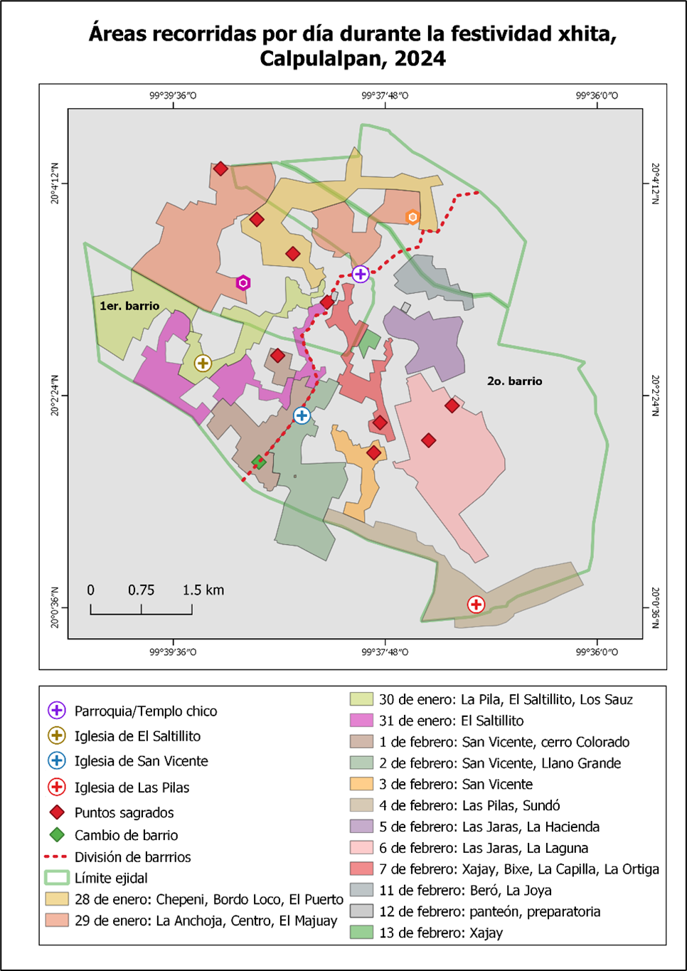 Figura 8 Áreas recorridas durante la festividad xhita en Calpulalpan, 2024.