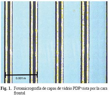 La pantalla de PDP está constituida por dos placas de vidrio que contienen capas de óxidos metálicos (Cuadros II y III). El porcentaje en peso de las capas de recubrimiento del vidrio PDP parte frontal es de 3.32 % y del vidrio PDP de la parte posterior es 5.31 % (8.63 % en total).