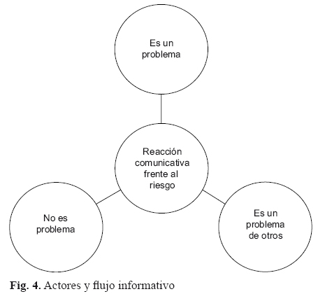 Estas fórmulas unidireccionales que se han transformado en las estrategias de acción local, se observan de manera reiterativa, y aun cuando existan como acciones concretas, la población no las percibe, y si bien ésta coincide en que la información existe, las instituciones gestoras del riesgo desconocen cómo la población las asume (con sentido o sólo como ruido), como bien lo ha tratado Moreno (2011) en América Latina en riesgos relacionados con la salud.
