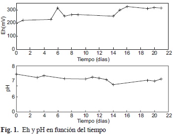 Para el análisis de plata se realizó una disgregación previa en termorreactor Merck TR 420. La presencia de sacarosa en el sistema a Eh menor a +100 mV, trajo como consecuencia que no fuera posible realizar la disgregación en el termorreactor para análisis de plata, ya que este nutriente se carbonizaba con el calor. Por ello, los resultados para plata se presentan únicamente hasta Eh de +100 mV.