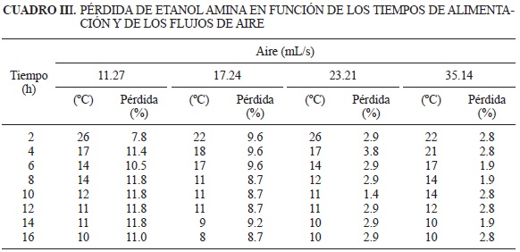 Pérdida de etanol amina en los sistemas EA-H2O-aire y EA-H2O-O2
