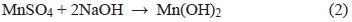 2. La determinación del punto de saturación de O2 disuelto (O2D) en agua bajo las condiciones atmosféricas de Salazar, Estado de México, presión de 523 mm de Hg y 2950 msnm y 15 °C, alimentando aire con una compresora Gast Modelo DOA-P109-FB a flujo constante de 11.27 mL/s durante 10, 15, 30, 45 y 60 min a 500 mL de H2O destilada libre de O2. El agua libre de O2 se preparó al hervir agua destilada durante 2 min en un matraz de Florencia, que se tapó holgadamente con un vaso pequeño invertido sobre el cuello del matraz. Posteriormente se redujo la temperatura con agua fría hasta alcanzar la del ambiente, el matraz se selló herméticamente para evitar la redisolución del O2 del aire. El agua preparada no está del todo libre de O2 por lo que se cuantificó el O2 disuelto residual (O2R). El O2R y el O2D se determinaron de acuerdo con el proyecto de la norma oficial mexicana PROY-NMX-AA-012/1-SCFI-209 (Secretaría de Economía 2010) utilizado comúnmente en el análisis de agua. Este método se basa en la oxidación del ión manganeso a ión mangánico (Mn2+Mn4 +) provocada por el O2D en medio fuertemente alcalino. Al acidificar la solución en presencia de un yoduro (I-), el ión mangánico oxida al yoduro y libera yodo (I2) en una cantidad equivalente al oxígeno que existía originalmente (concentración de O2D). De acuerdo con las siguientes ecuaciones: