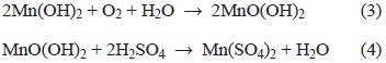 El yodo libre se cuantifica con una solución de tiosulfato de sodio valorada. Los cálculos para determinar el O2D se realizaron con la ecuación (6), el valor calculado incluye al O2R (del agua libre de oxígeno).