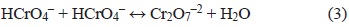 Es de destacar la coloración amarilla para los lavados con agua y con soluciones alcalinas, las cuales forman iones cromato (HCrO4- y CrO4-2) mismos que le confieren ese color amarillo "fosforescente" característico. Mientras que las soluciones ácidas producen un color naranja causado por la polimerización del HCrO4- para formar el ión dicromato (Cr2O7-2) lo cual concuerda con lo reportado por Beattie y Haight (1972) conforme a la reacción 3.