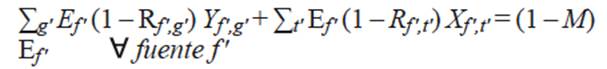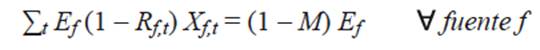 Para estudiar un SPET al modelo detallado anteriormente se le agrega la restricción (iv). En el caso de analizar un estándar de emisiones la restricción (iv) se cambia por las restricciones (v), (vi) y (vii), las cuales indican que todas las fuentes deben reducir en un mismo porcentaje sus emisiones. La notación utilizada en las restricciones (iv), (v), (vi) y (vii) se detalla a continuación:
