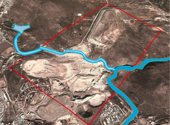 Barraza (2015) menciona que en la zona de estudio existen dos corrientes de agua (marcadas en color azul, Fig. 11), las cuales son de tipo intermitente, es decir, que sólo en época de lluvias pudieran llegar a tener agua y provocar arrastre de jales.