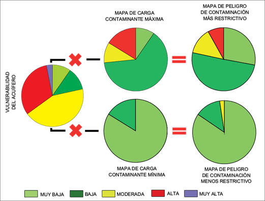 Según Massone y Martínez (2008) combinar las variables vulnerabilidad del acuífero y carga contaminante potencial, permite evaluar el peligro de contaminación del agua subterránea. Este se define como la posibilidad de que un acuífero experimente impactos negativos hasta un nivel tal que el agua que contiene se torne inaceptable para el consumo humano, de acuerdo con los valores guía de la Organización Mundial de la Salud (OMS) para calidad de agua potable (Foster et al. 2003). La evaluación del peligro de contaminación es un prerrequisito esencial para la protección de los recursos hídricos subterráneos, ya que permite discriminar en un territorio las áreas con mayor probabilidad de tener impactos negativos sobre el acuífero y de esta manera generar las medidas de control y mitigación necesarias. En este sentido, si consideramos las dificultades, físicas y económicas, asociadas a la remediación de acuíferos, la mejor forma de protección es la prevención de la contaminación (Hadžić et al. 2015).
