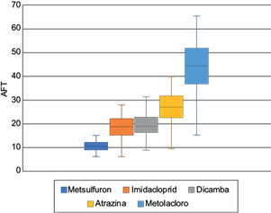Fig. 6 Índices AFT promedio para los plaguicidas con capacidad de lixiviación superior a poco probable.