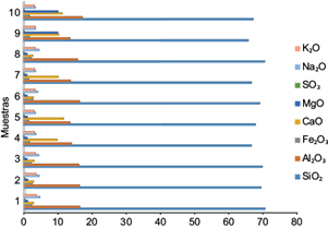 | Cristobalita (%) | 0 | 0 | 0 | 0 | 3 | 0 | 0 |