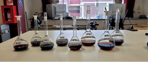 After 24 hours, a solution was obtained using filtration equipment and a vacuum pump. The pressure difference generated was used to retain the solids in the filter paper. The leachate solutions were stored in 500 mL volumetric flasks labeled as shown in figure 2.