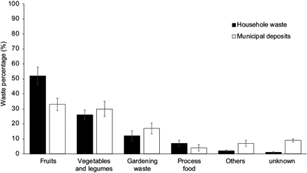All statistical analyses were conducted using Matlab v. 9.14.0. A one-way analysis of variance was used to infer statistically significant differences between the household and municipal deposit wastes after the data were confirmed to follow a normal distribution with a confidence interval of 95%.