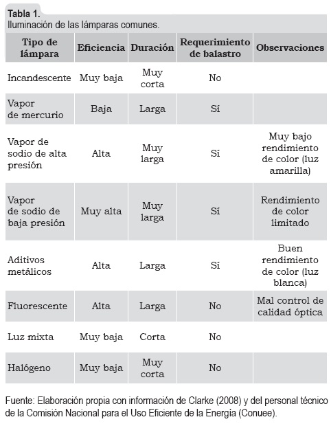 Actualmente, en los municipios mexicanos convergen diversas tecnologías en la provisión del alumbrado municipal. Al ser esta diversidad muy amplia, el potencial de inversión en eficiencia energética es igualmente variable. Los principales tipos de energía que operan en los municipios pueden observarse en la tabla 1, donde se presentan también las principales características de cada uno.