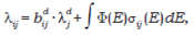 es la proporción de ramificación del decaimiento del j-ésimo núclido en el i-ésimo núclido, Φ es el flujo de neutrones de energía E y σ