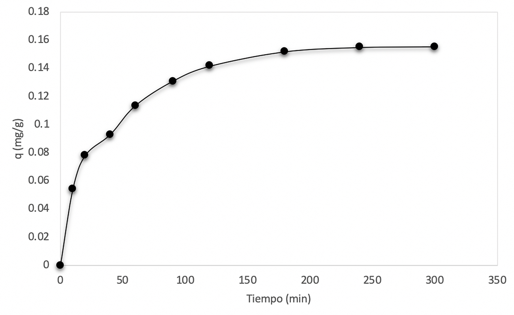 Figura 11 Gráfica de capacidad de adsorción conforme pasa el tiempo