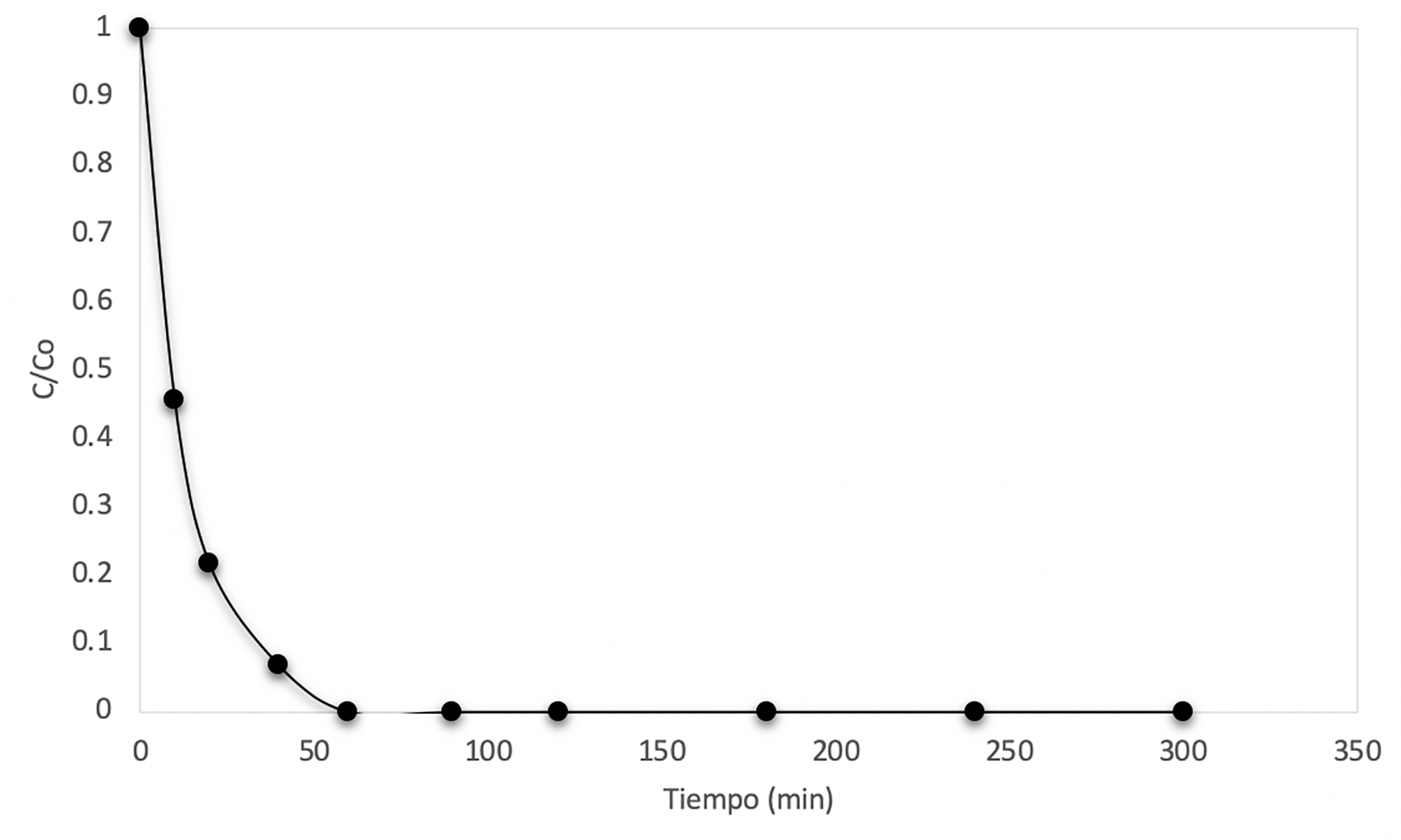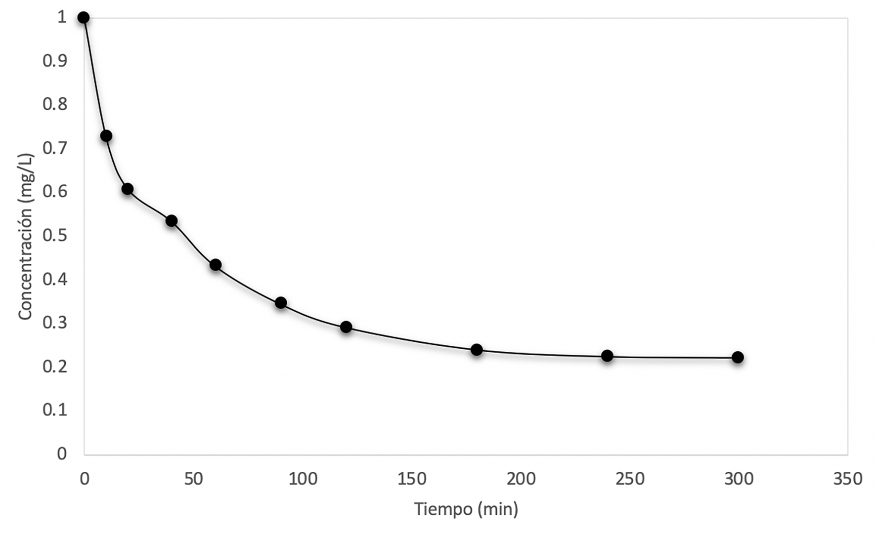 Figura 12 Curva de decaimiento de la concentración cuando Co = 1 mg/L