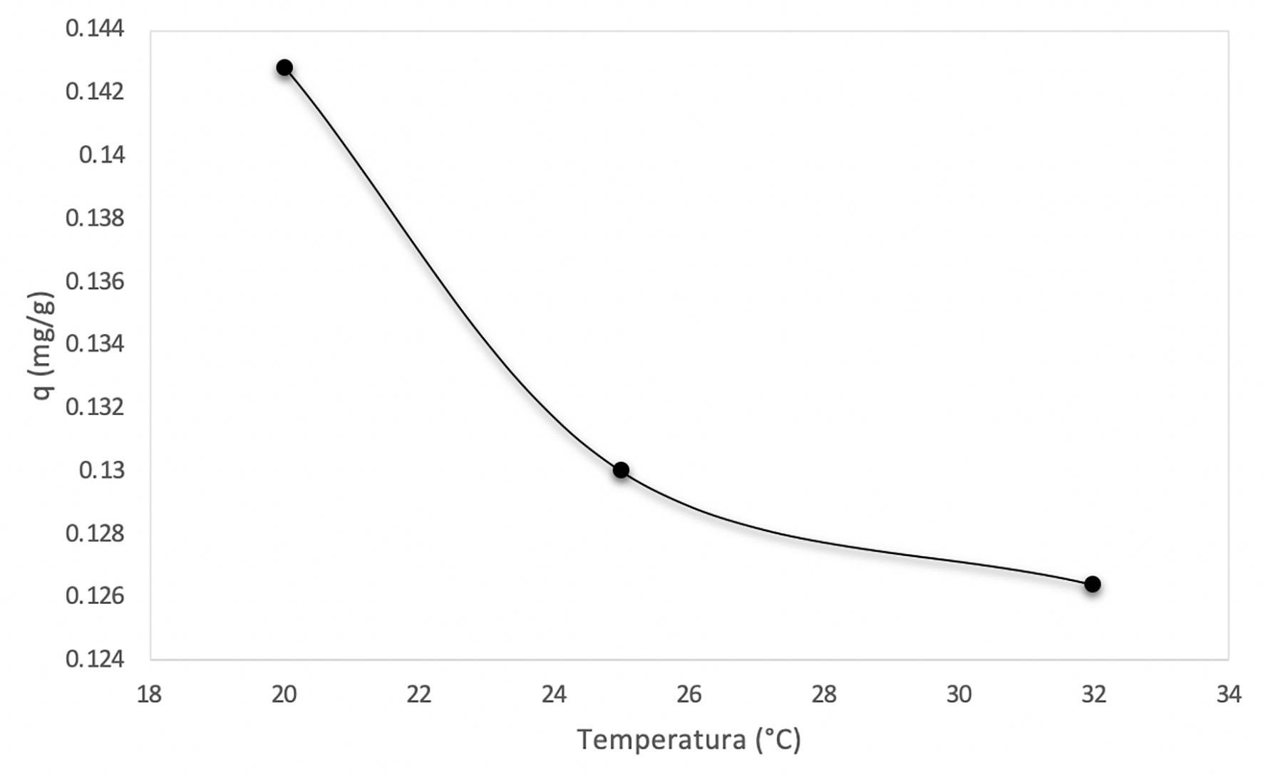 En las Figuras 8 y 9 se muestra que el porcentaje y la capacidad de remoción de arsénico son mayores a 20 °C, por lo cual se puede decir que la adsorción se favorece a temperaturas bajas.
