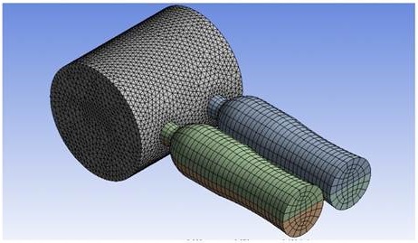 En la Figura 6 se muestra la geometría del CSA, la cual fue modelada en Design Modeler ® de ANSYS®. Debido a la complejidad de la geometría de la botella, se cuidó que el volumen de esta fuera el de una botella real. La geometría del CSA contiene dos botellas de PET de 355 ml y la relación de volumen en el tanque al volumen de las botellas es de 2.5. Los parámetros y dimensiones utilizados en la geometría se presentan en la Tabla 1.