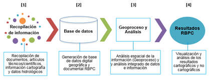 Recopilación de información, que consistió en la recopilación de documentos, artículos técnicos/científicos en distintas bases de datos, información cartografía, datos hidrológicos, información institucional nacional e internacional relacionada a la RBPC en portales de geoinformación de la Conabio (CONABIO, 2020), la Conagua, la Conanp, el INEGI y la National Aeronautics and Space Administration (NASA).