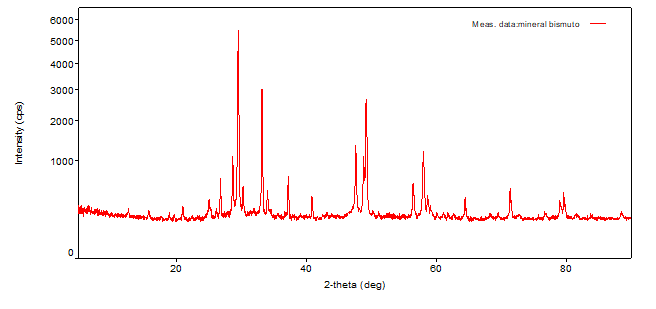 Minerals are crystalline and the spatial distribution of their components is arranged as structured networks (Consejo Superior de Investigaciones Científicas [CSIC], 2020; Servicio Geólogico Mexicano [SGM], 2010); hence, XRD studies can also be used to obtain the diffraction pattern of the sample (Figure 4) quantitative analyzes.
